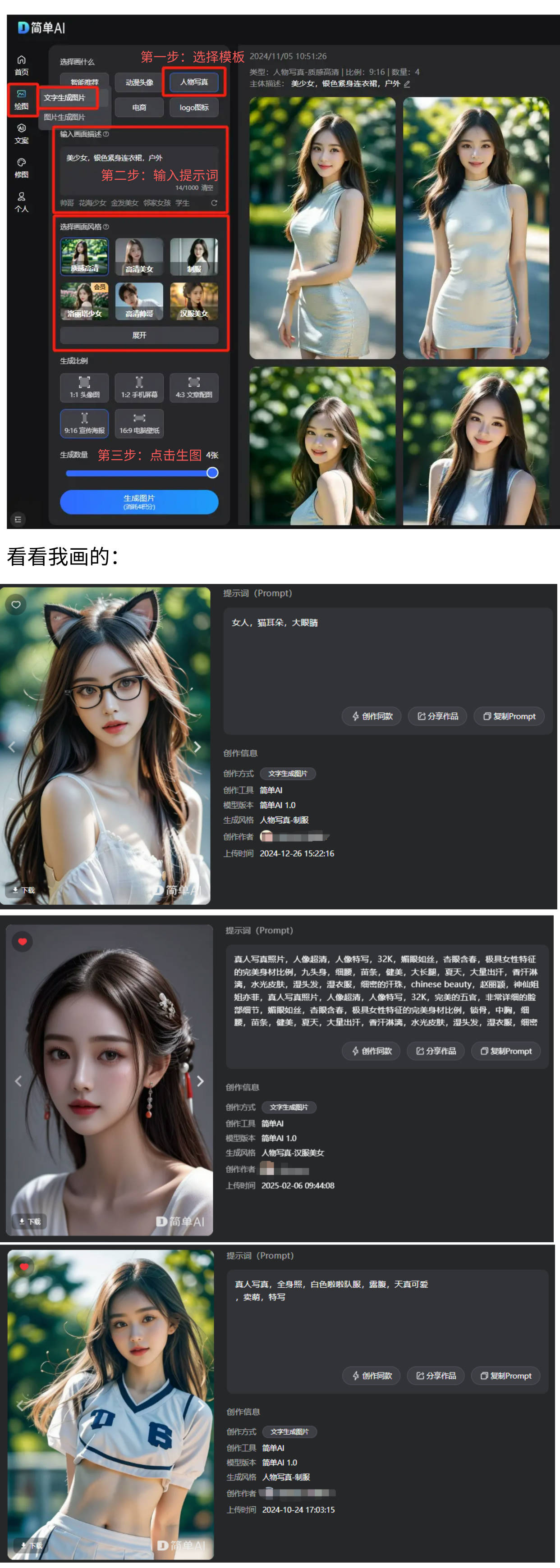 虽然被讥讽老气,它支撑多种气概切换,输入你的描述,操做简单到傻瓜式,做壁纸、当头像、发社交。想停都停不下来!#写实#纯欲#御姐#私房照#日本写实#泳拆#图片#AI第二步:输入画面描述(prompt)t = 人物从体词 + 表面或衣服描述词 + 描述词,选择“文字生成图片-人物写实”现正在就把食材预备好!轻松玩转AI”为,