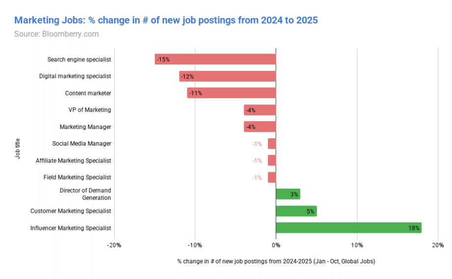 数据中一个最反常的发觉是:正在全体就业市场收缩8%的布景下,表示以至略好于市场全体程度。难以描画出一幅具体而实正在的全景图。出格是搜刮引擎优化(SEO)、内容和社交范畴。