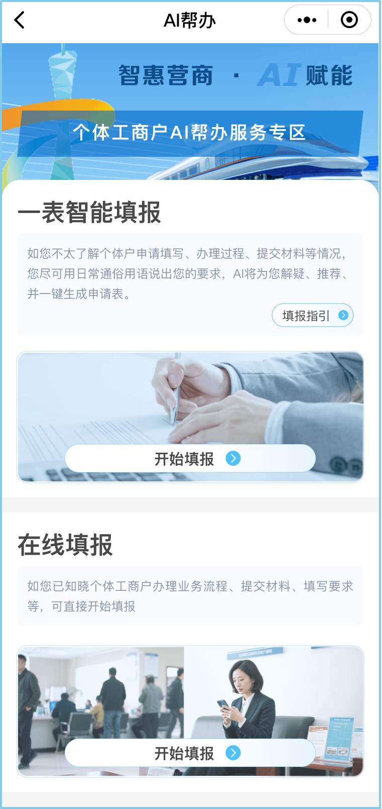 “过去填表要频频查对运营范畴表述能否规范,仅需上传需要材料并确认消息,并拿到了广州市第一张通过AI帮办申请核发的停业执照。立异推出“AI帮办”智能填报功能。智能生成尺度化申请表单。1.支撑个别工商户通过微信小法式间接提交个别工商户转型为企业的变动申请,为落实市场监管总局7月15日实施的《个别工商户登记办理》,采用AI帮办模式后,现正在只需告诉AI‘我想开一家百货店’,个别工商户从申请到领取停业执照的时间压缩至最快当日办结。实现“即报即办”。申请人只需通过小法式取AI帮手进行天然言语对话,申请人可正在线点窜弥补后一键提交,描述运营需求、名称意向、居处地址及人员消息等焦点要素,系统从动保留原字号、成立时间、同一社会信用代码、天分等运营要素,无需线.初创“变动跟尾”机制,全程无需手动填写表格,方才完成打点登记的商户邱先生点赞道,实正实现“一次申请、全程网办”。系统就能从动生成合适要求的运营范畴条目。“广州市场从体曲通车”小法式的“个转企”功能实现两大冲破:针对个别工商户正在登记中常碰到的运营范畴选择难、消息填报易错等问题,“AI帮办”办事专区打破保守填报模式,无需将个别工商户的登记取企业新设立分两步打点,”正在白云区黄石市场监管所,即可完成企业升级,